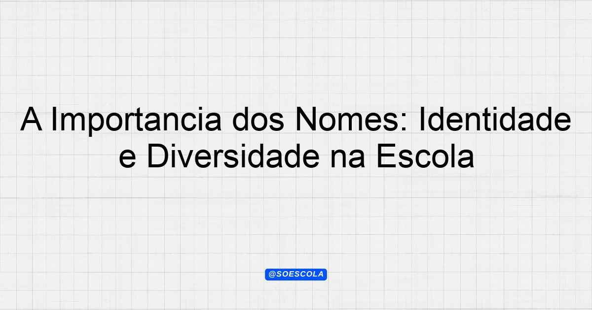 A Importância dos Nomes: Identidade e Diversidade na Escola