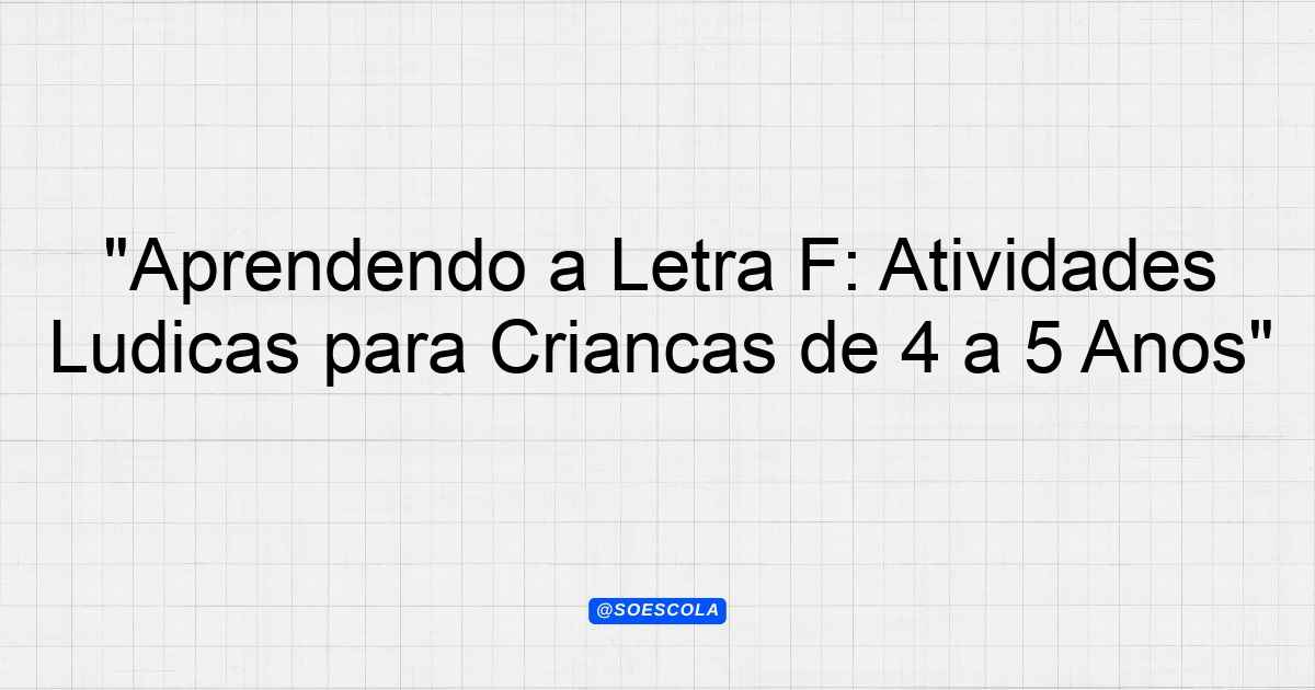 “Aprendendo a Letra F: Atividades Lúdicas para Crianças de 4 a 5 Anos”