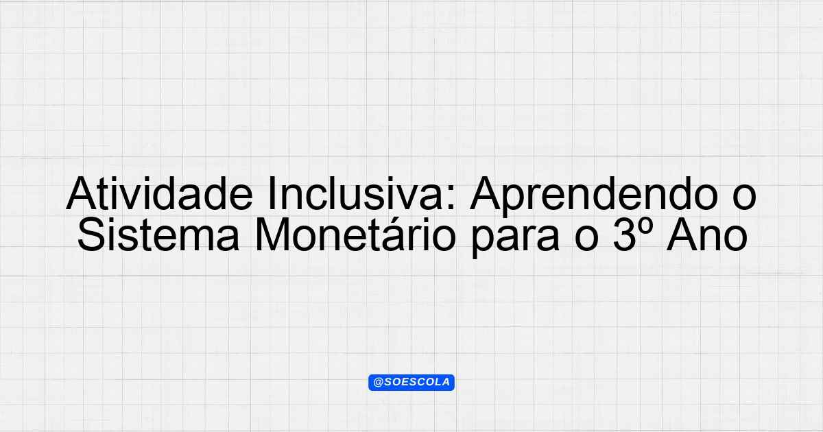 Atividade Inclusiva: Aprendendo o Sistema Monetário para o 3º Ano