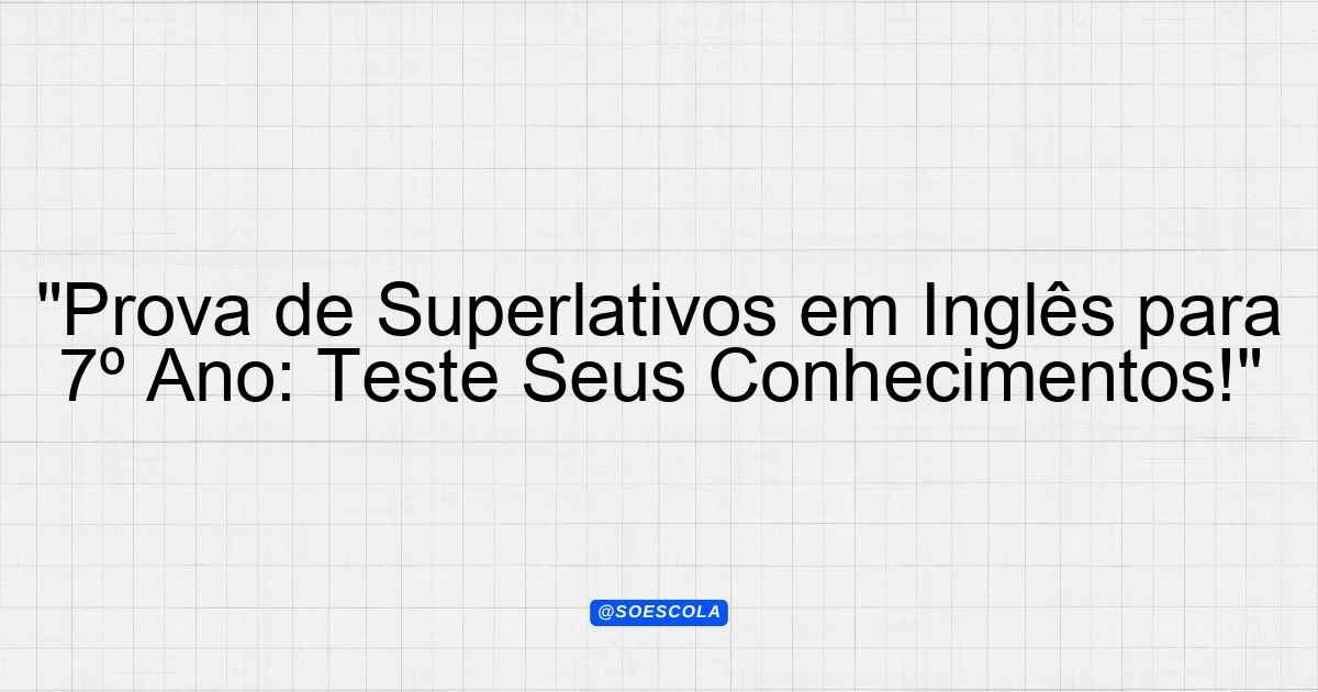 Continue lendoTema: surperlativosEtapa/Série: 7º anoDisciplina: Língua InglesaQuestões: 20 Prova de Língua Inglesa – 7º Ano Tema: Superlativos Esta prova foi elaborada