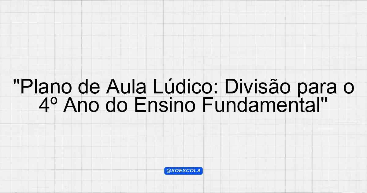 Continue lendoA seguir, apresento um plano de aula detalhado sobre Divisão, destinado a alunos do 4º ano do Ensino Fundamental. O