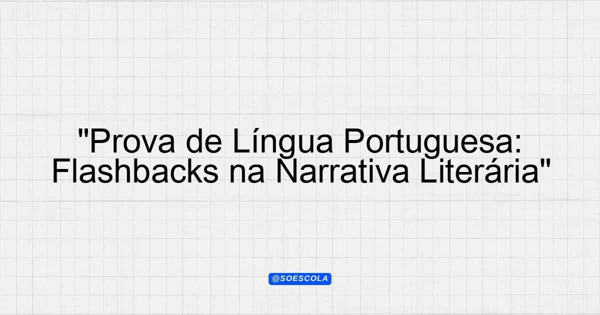 Continue lendoTema: narrativas de flashbackEtapa/Série: 9º anoDisciplina: Língua PortuguesaQuestões: 10 Prova de Língua Portuguesa – 9º Ano Tema: Narrativas de Flashback