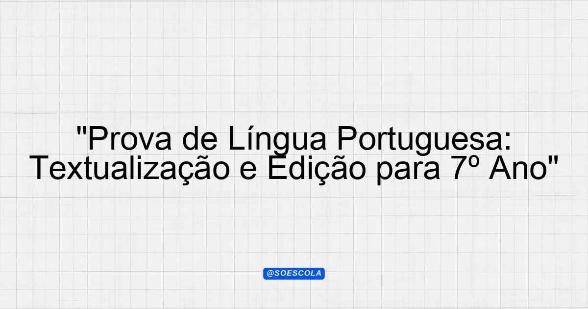 Continue lendoTema: TEXTUALIZAÇÃO, REVISÃO E EDIÇÃO, ESTILO , APRECIAÇÃO E RÉPLICAEtapa/Série: 7º anoDisciplina: Língua PortuguesaQuestões: 10 Prova de Língua Portuguesa –
