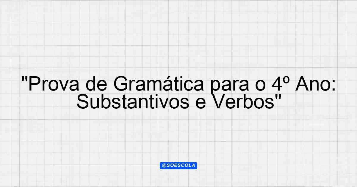 Continue lendoTema: Gramática com os assuntos Substantivo numeral verbo adjetivo quantidade de sílabas dígrafoEtapa/Série: 4º anoDisciplina: Língua PortuguesaQuestões: 20 Prova de