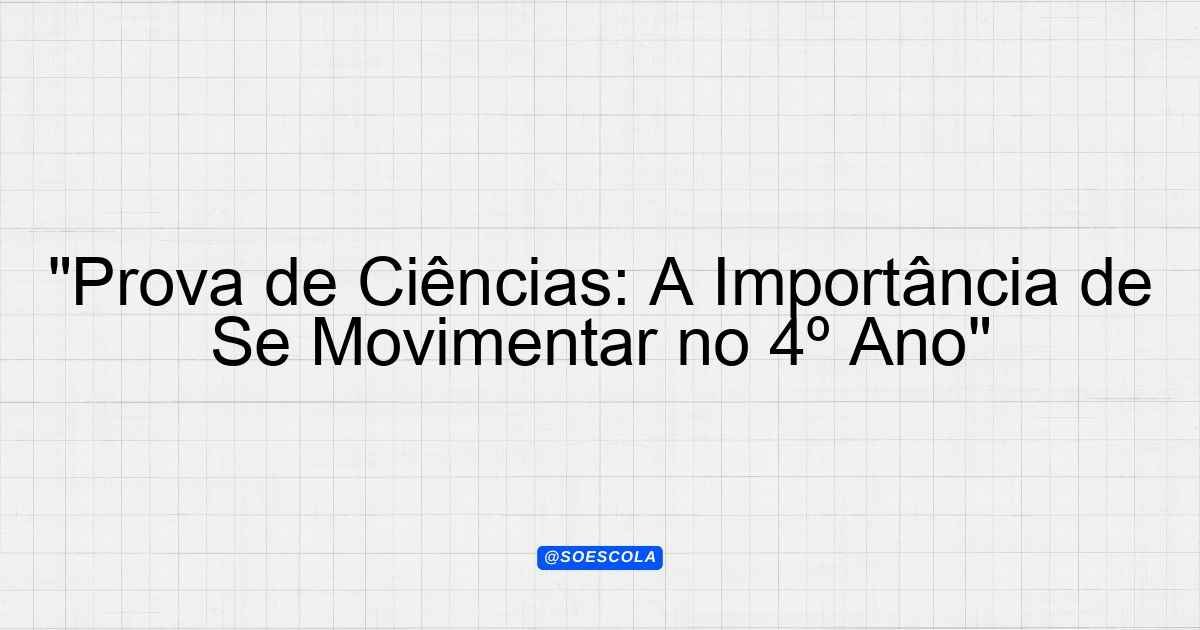 Continue lendoTema: movimentar é precisoEtapa/Série: 4º anoDisciplina: CiênciasQuestões: 4 Prova de Ciências – 4º Ano Tema: Movimentar é Preciso Instruções: Responda