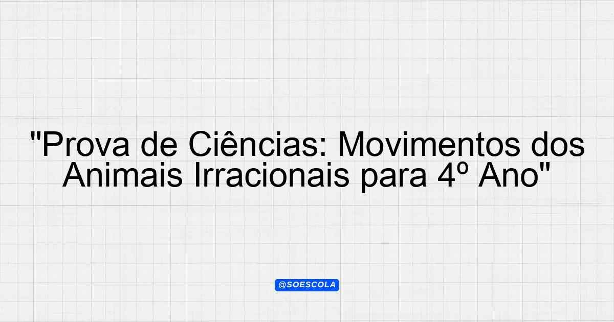 Continue lendoTema: movimentos dos animais iracionaisEtapa/Série: 4º anoDisciplina: CiênciasQuestões: 4 Prova de Ciências: Movimentos dos Animais Irracionais Nome do aluno: ______________________