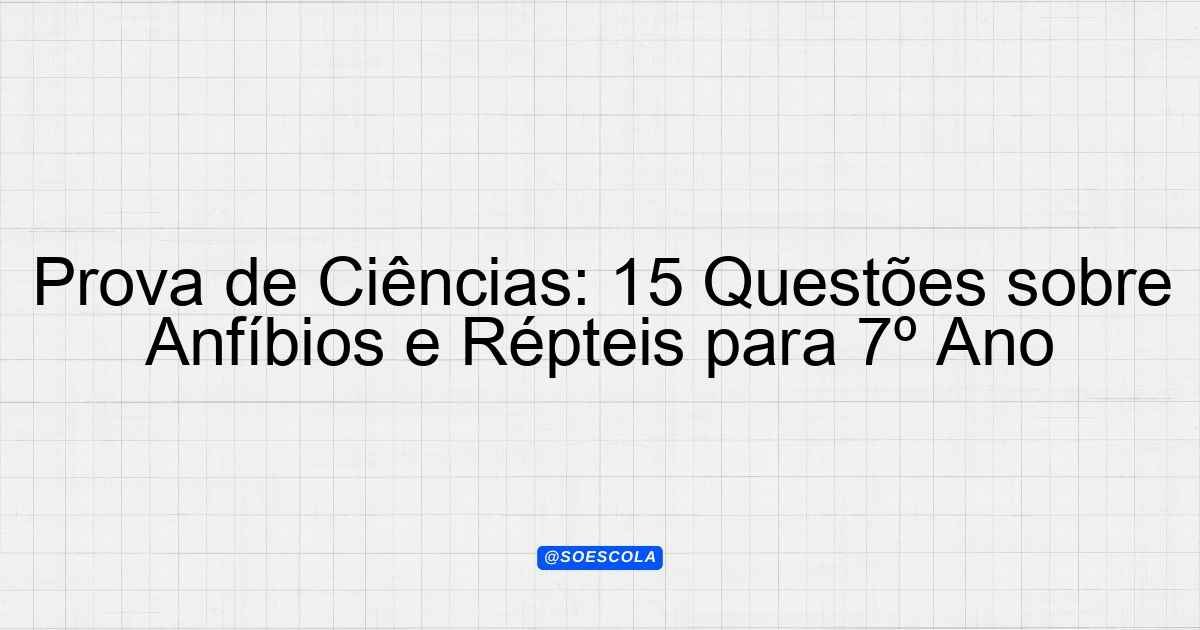 Continue lendoTema: anfíbios e répteisEtapa/Série: 7º anoDisciplina: CiênciasQuestões: 15 Prova de Ciências – Anfíbios e Répteis Abaixo você encontrará uma avaliação