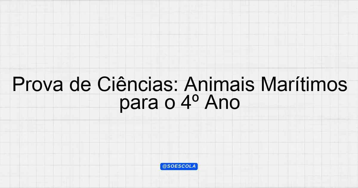 Continue lendoTema: animais maritimoEtapa/Série: 4º anoDisciplina: CiênciasQuestões: 4 Prova de Ciências – Tema: Animais Marítimos Aluno(a): ____________________________________ Data: ________________ Instruções: Leia
