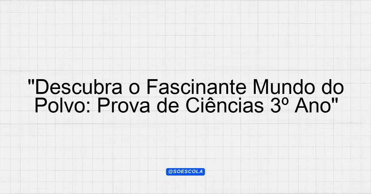 Continue lendoTema: animal maritimo o polvoEtapa/Série: 3º anoDisciplina: CiênciasQuestões: 1 Prova de Ciências – 3º Ano Tema: O Polvo Instruções: Responda