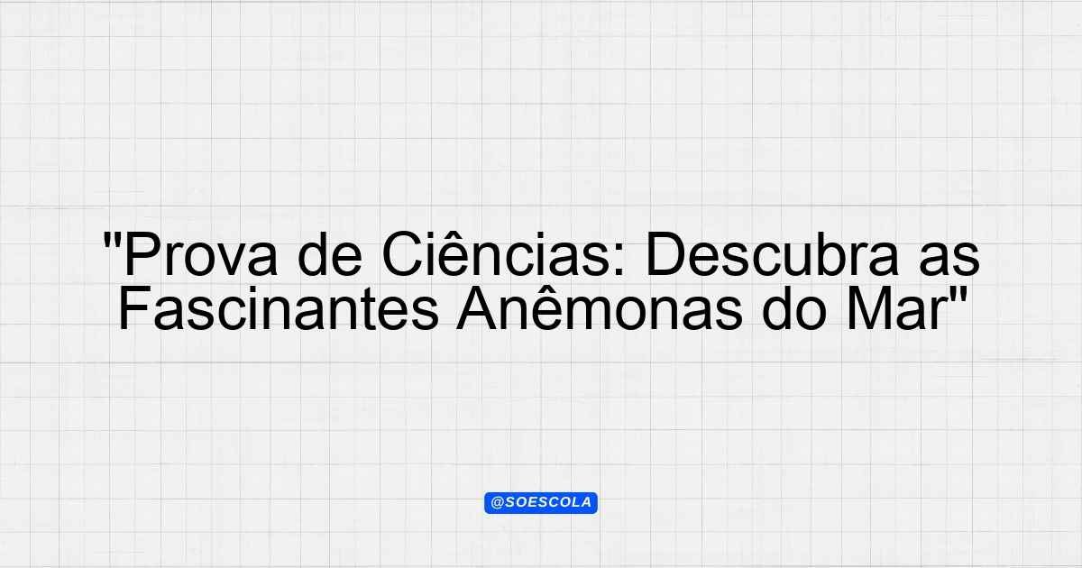 “Prova de Ciências: Descubra as Fascinantes Anêmonas do Mar”