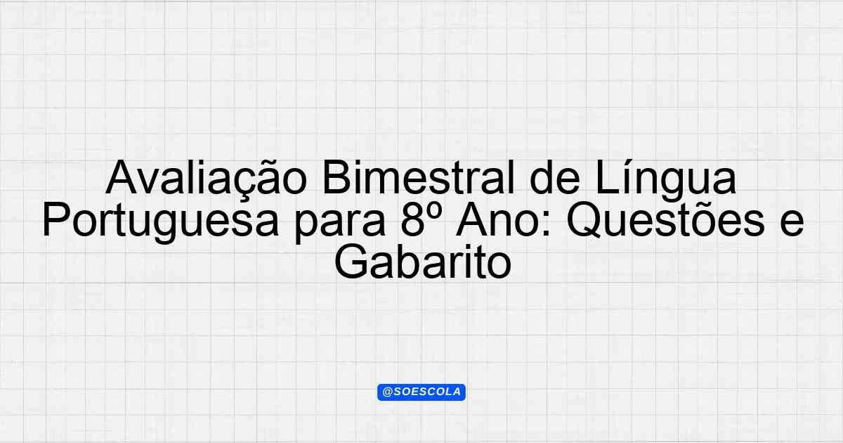 Continue lendoTema: avaliação bimestralEtapa/Série: 8º anoDisciplina: Língua PortuguesaQuestões: 10 Avaliação Bimestral de Língua Portuguesa – 8º Ano Esta avaliação bimestral tem