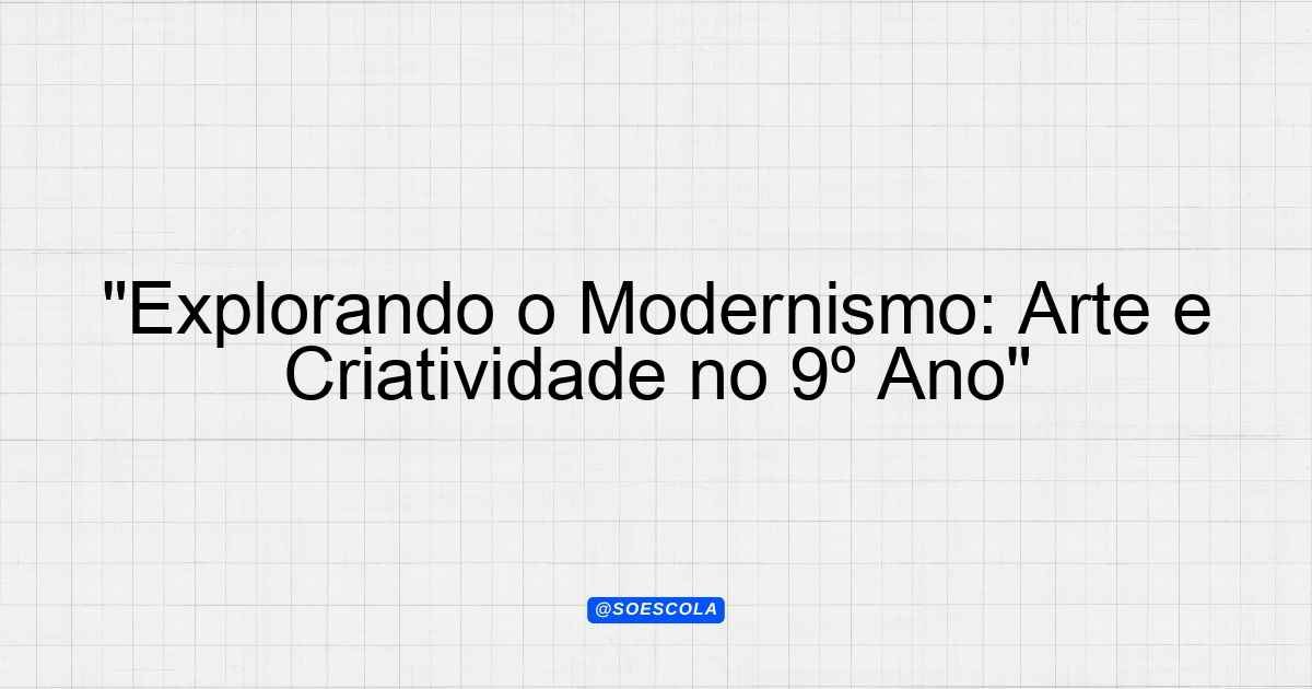Continue lendoA aula proposta sobre o Modernismo será realizada com o enfoque na disciplina de Artes, considerando o contexto do 9º
