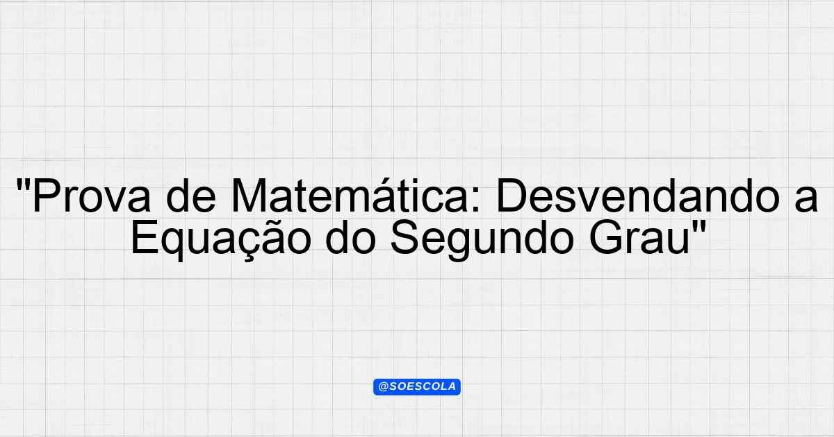 Continue lendoTema: equação do segundo grauEtapa/Série: 8º anoDisciplina: MatemáticaQuestões: 15 Prova de Matemática: Equação do Segundo Grau – 8º Ano Instruções: