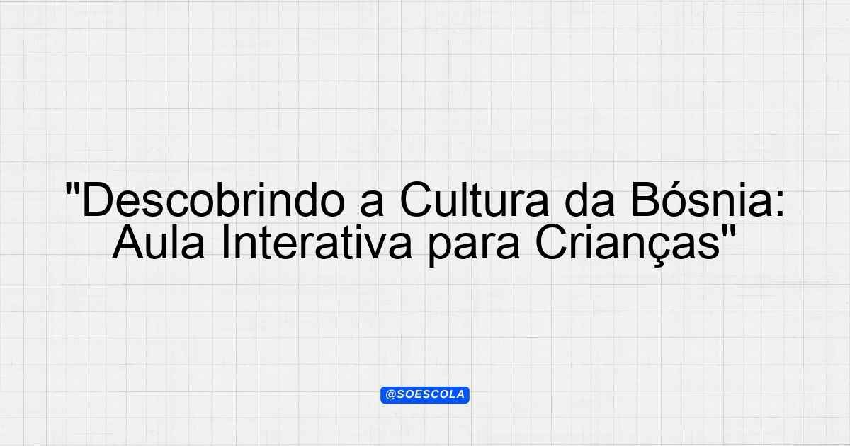 Continue lendoNeste plano de aula, o foco é trabalhar com o tema “minha pátria, Bósnia e Herzegovina” através do uso de