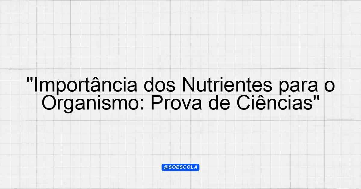 Continue lendoTema: Explicar a necessidade de ingestão de diferentes nutrientes frente às demandas do organismo humano.Etapa/Série: 6º anoDisciplina: CiênciasQuestões: 3 Prova