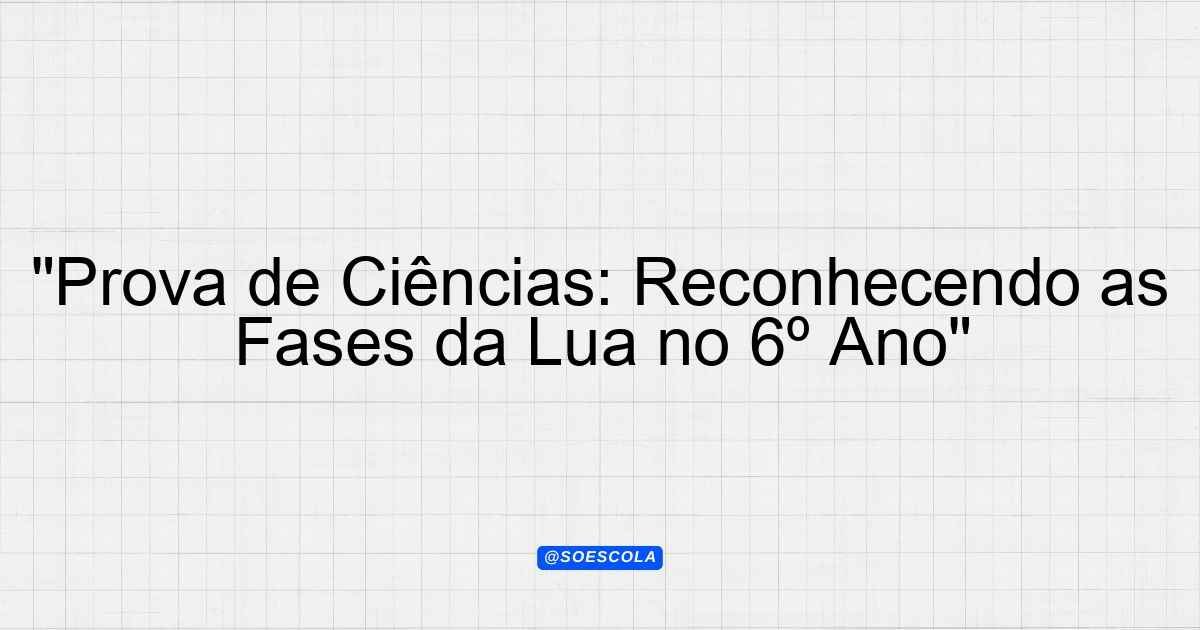 Continue lendoTema: Reconhecer as fases da Lua.Etapa/Série: 6º anoDisciplina: CiênciasQuestões: 3 Prova de Ciências – 6º Ano Tema: Reconhecer as Fases