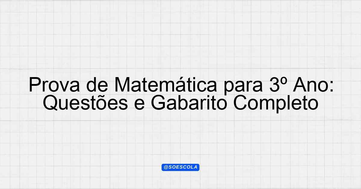 Continue lendoTema: MatemáticaEtapa/Série: 3º anoDisciplina: MatemáticaQuestões: 15 Prova de Matemática – 3º Ano Esta prova tem como objetivo avaliar os conhecimentos