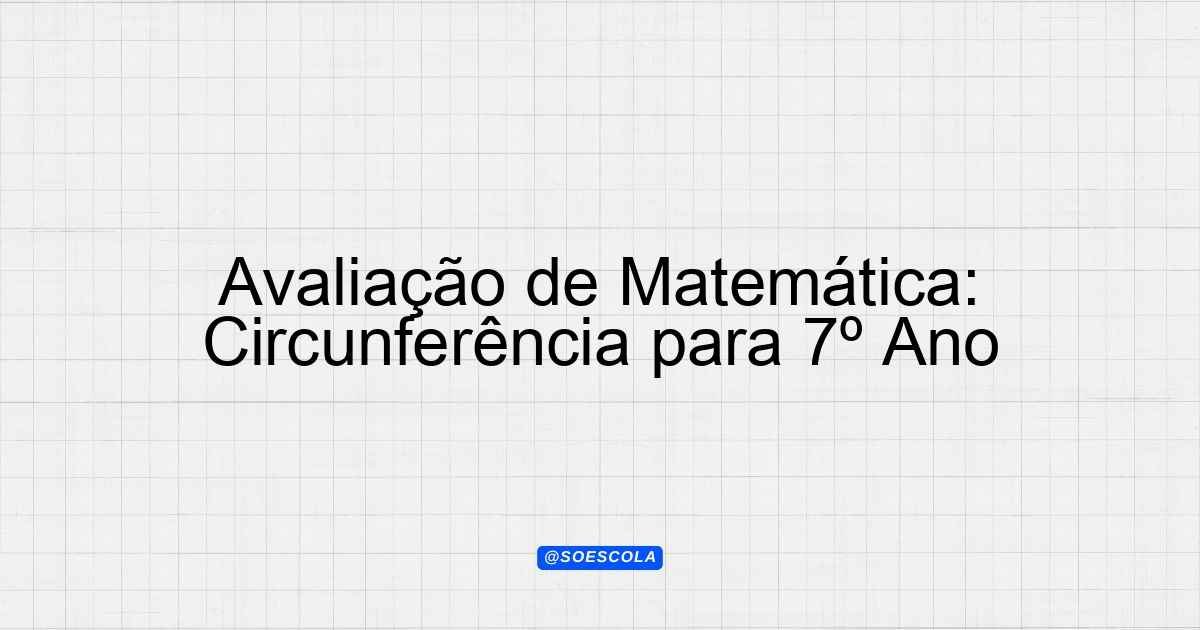 Continue lendoTema: CircunferênciaEtapa/Série: 7º anoDisciplina: MatemáticaQuestões: 10 Prova de Matemática: Circunferência – 7º Ano Esta prova tem como objetivo avaliar seus