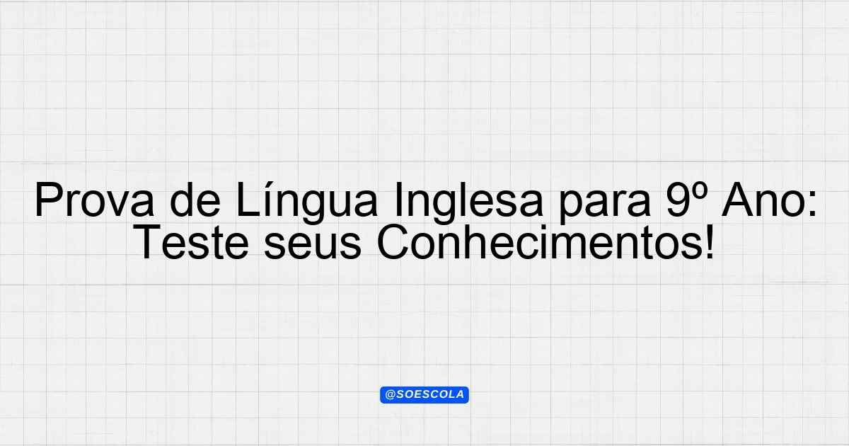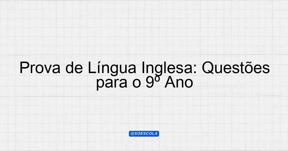 Continue lendoTema: English TestEtapa/Série: 9º anoDisciplina: Língua InglesaQuestões: 10 Prova de Língua Inglesa – 9º Ano Esta prova tem como objetivo