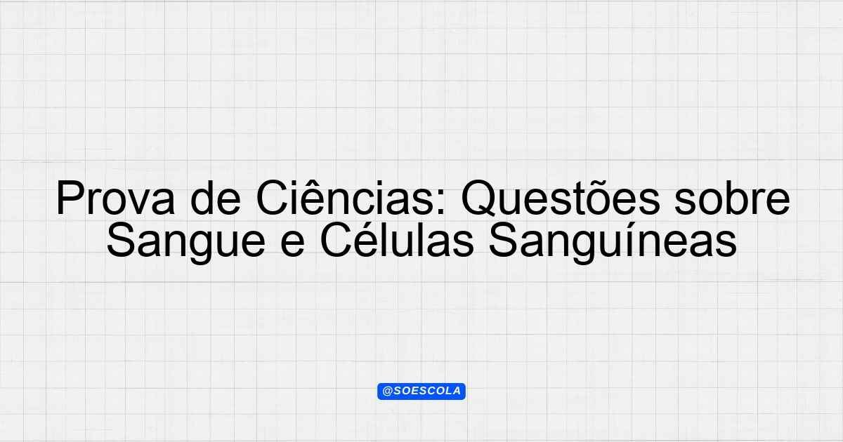 Continue lendoTema: Sangue e células sanguíneasEtapa/Série: 8º anoDisciplina: CiênciasQuestões: 15 Prova de Ciências: Sangue e Células Sanguíneas Aluno(a): ____________________________ Data: ____/____/____