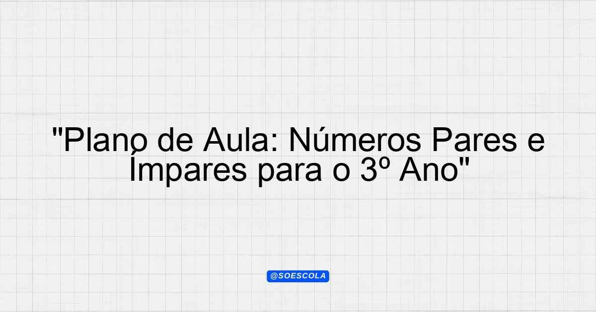 Continue lendoO plano de aula a seguir é dedicado ao tema dos Números Pares e Ímpares, uma questão fundamental dentro do