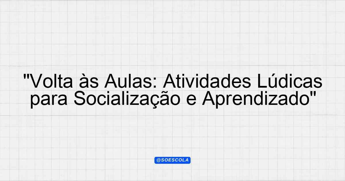 “Volta às Aulas: Atividades Lúdicas para Socialização e Aprendizado”