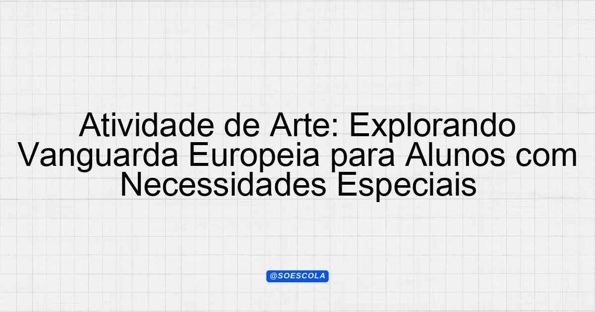 Continue lendoAtividade Adaptada – vanguarda europeias 📚 Disciplina: Arte 🎓 Série/Ano: 2º ano EM ♿ Necessidades Especiais: TDAH, Dislexia, Espectro Autista