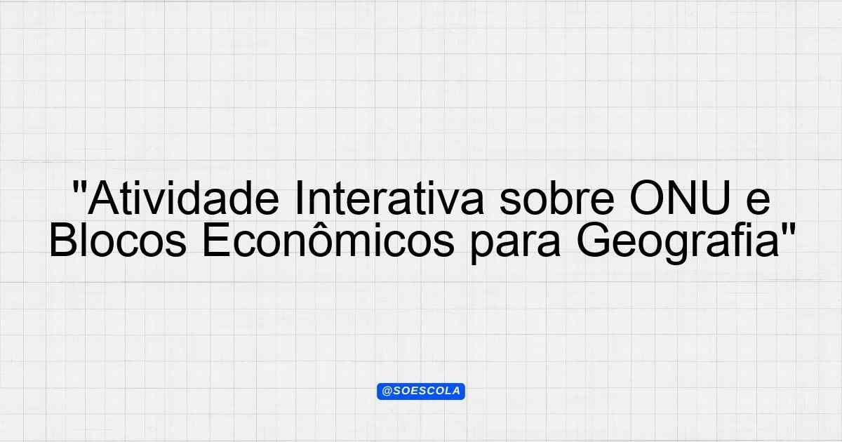 Continue lendoAtividade Adaptada – ONU/ Blocos economiocos 📚 Disciplina: Geografia 🎓 Série/Ano: 3º ano EM ♿ Necessidades Especiais: TDAH, Discalculia 📊