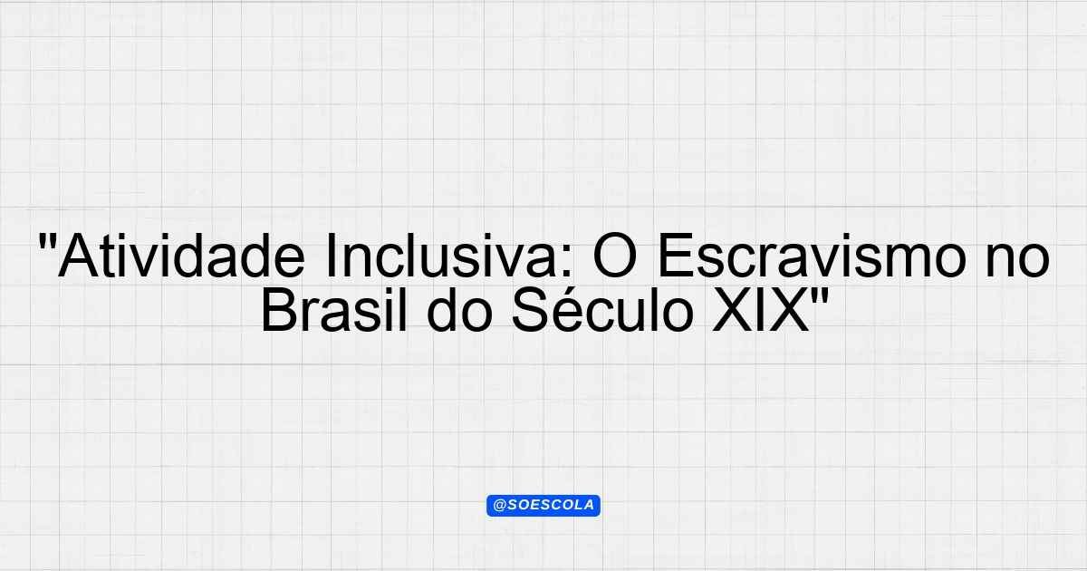Continue lendoAtividade Adaptada – O escravismo no Brasil do século XIX 📚 Disciplina: História 🎓 Série/Ano: 8º ano EF ♿ Necessidades