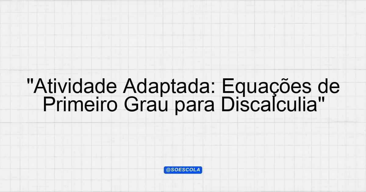 “Atividade Adaptada: Equações de Primeiro Grau para Discalculia”