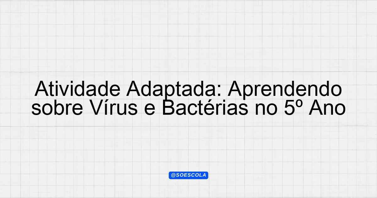 Continue lendoAtividade Adaptada – virus e bacterias 📚 Disciplina: Ciências 🎓 Série/Ano: 5º ano EF ♿ Necessidades Especiais: Espectro Autista 📊