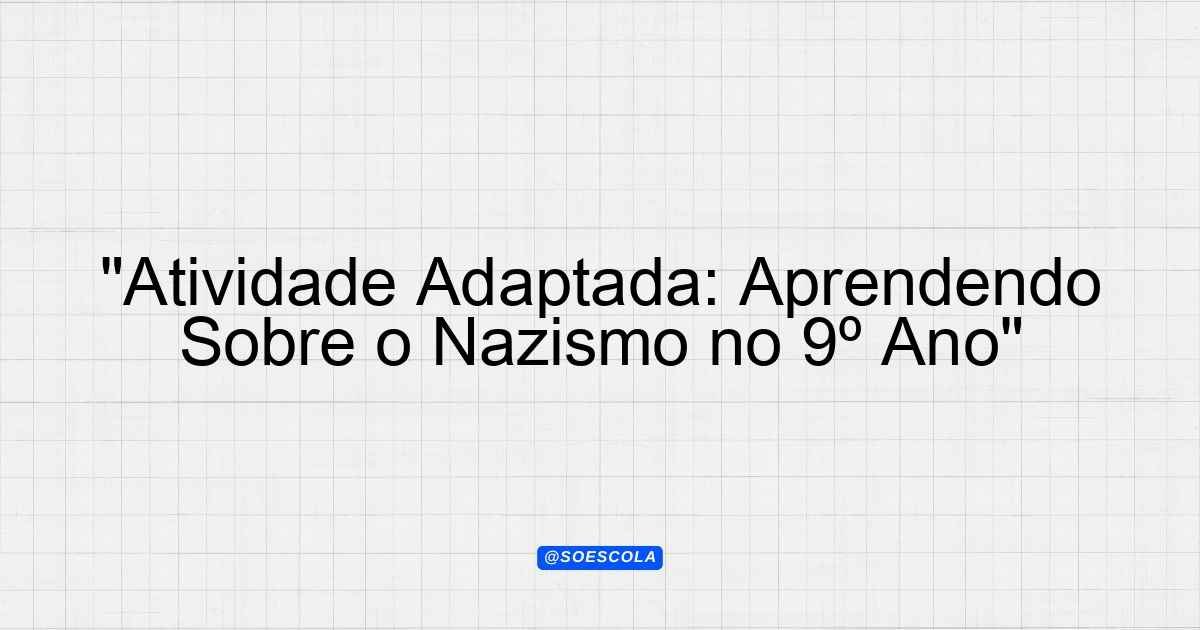 Continue lendoAtividade Adaptada – nazismo 📚 Disciplina: História 🎓 Série/Ano: 9º ano EF ♿ Necessidades Especiais: Dislexia 📊 Nível: Intermediário ⏰