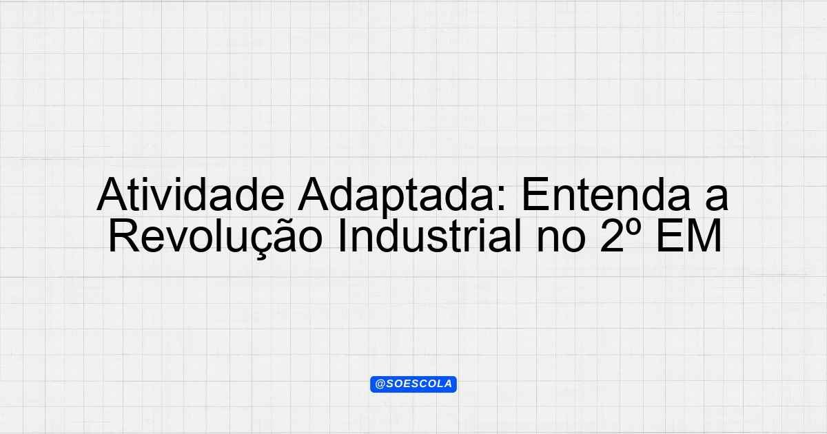 Continue lendoAtividade Adaptada – Revolução Industrial 📚 Disciplina: História 🎓 Série/Ano: 2º ano EM ♿ Necessidades Especiais: TDAH, Dislexia 📊 Nível: