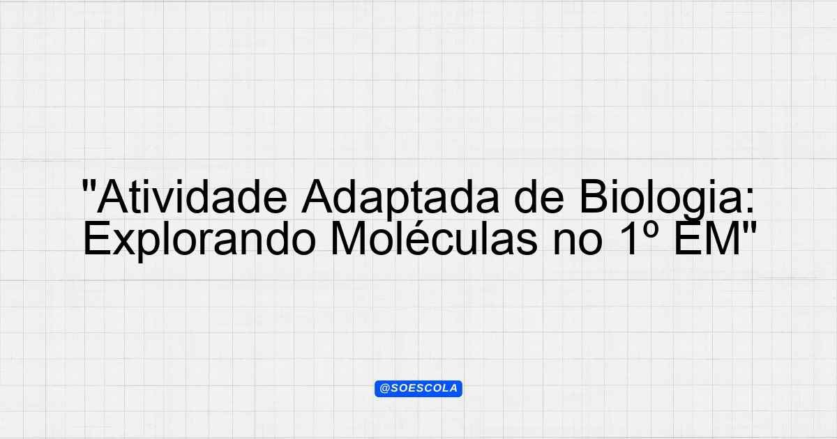 Continue lendoAtividade Adaptada – moléculas 📚 Disciplina: Biologia 🎓 Série/Ano: 1º ano EM ♿ Necessidades Especiais: TDAH, Dislexia, Discalculia, Espectro Autista