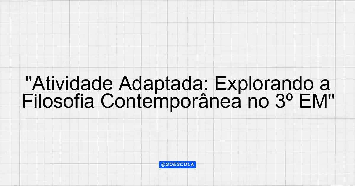 Continue lendoAtividade Adaptada – filosofia contemporânea 📚 Disciplina: Filosofia 🎓 Série/Ano: 3º ano EM ♿ Necessidades Especiais: TDAH, Dislexia, Espectro Autista