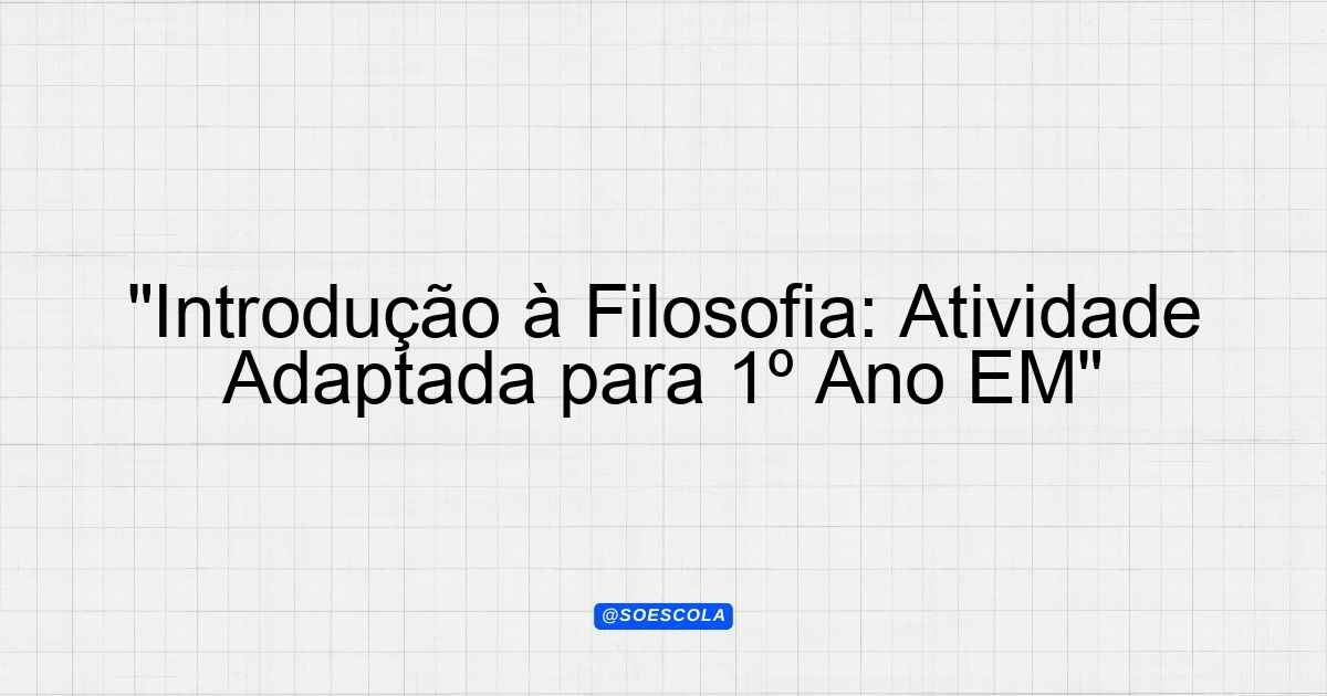 Continue lendoAtividade Adaptada – introduçõ a filosofia 📚 Disciplina: Filosofia 🎓 Série/Ano: 1º ano EM ♿ Necessidades Especiais: TDAH, Dislexia, Espectro