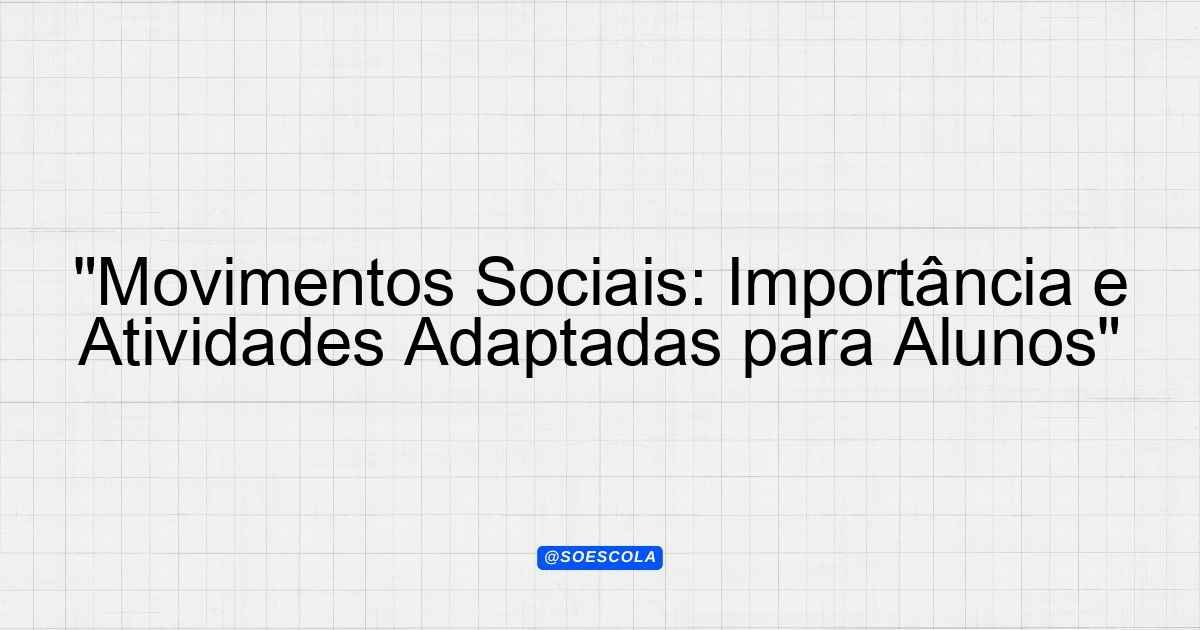 Continue lendoAtividade Adaptada – movimento sociais e sua importancia 📚 Disciplina: Sociologia 🎓 Série/Ano: 1º ano EM ♿ Necessidades Especiais: TDAH,