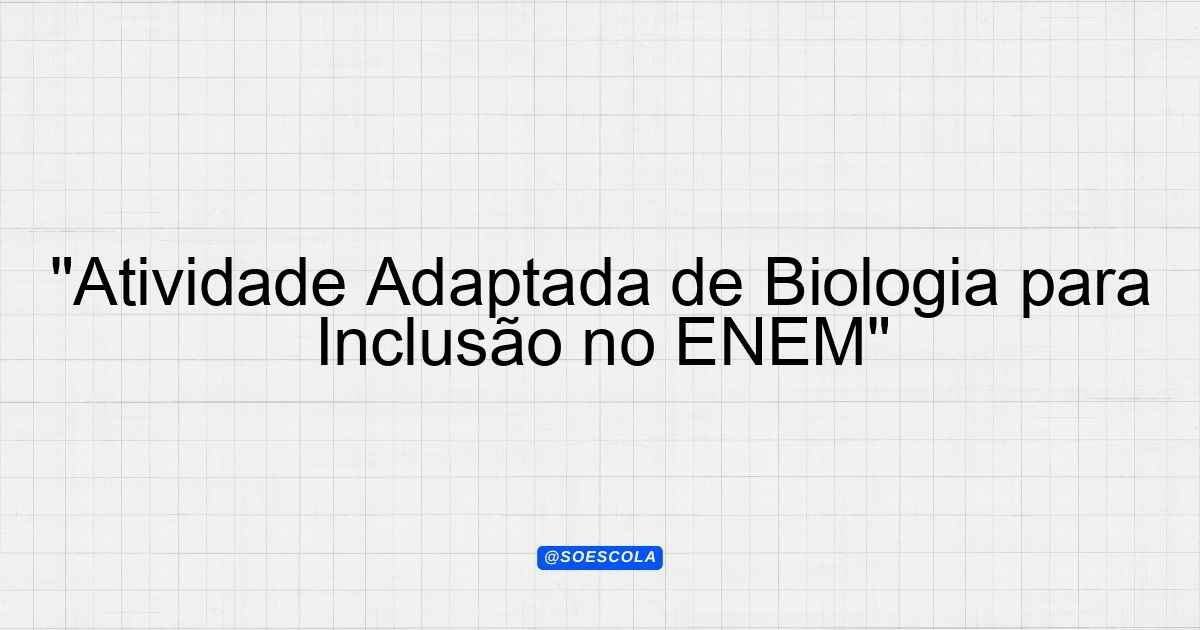 Continue lendoAtividade Adaptada – biologia para enem 📚 Disciplina: Biologia 🎓 Série/Ano: 3º ano EM ♿ Necessidades Especiais: TDAH, Dislexia, Discalculia,