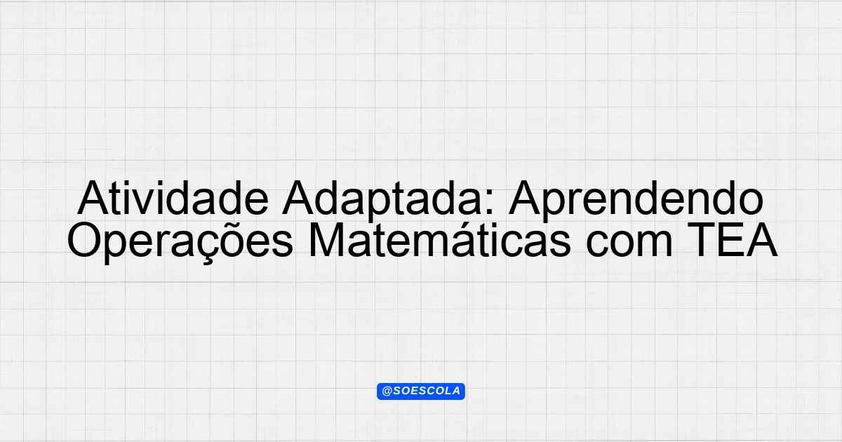 Continue lendo🌟 Atividade Adaptada – operações Tipo de Adaptação: Transtorno do Espectro Autista (TEA) (Grau severo) | Ano: 5 | Disciplina: