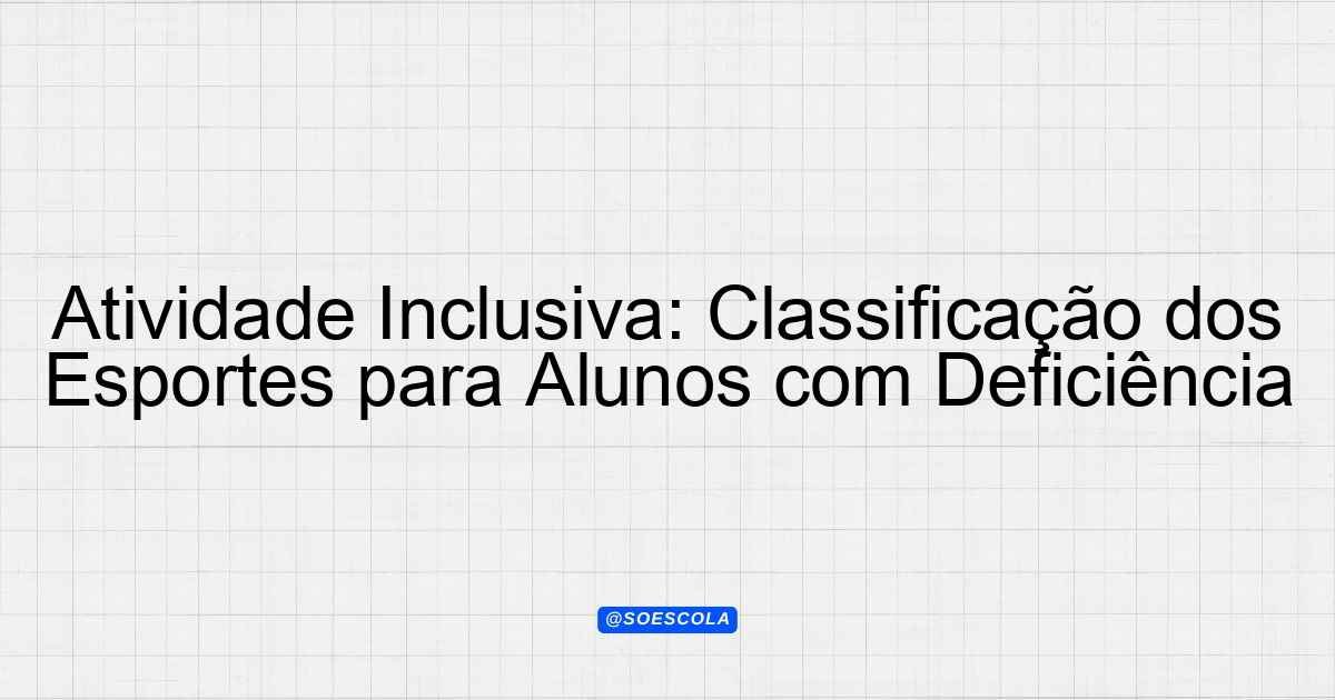Continue lendo🌟 Atividade Adaptada – CLASSIFICAÇÃO DOS ESPORTES Tipo de Adaptação: deficiência múltipla (combinação de deficiências) (Grau moderado) | Ano: 6ª