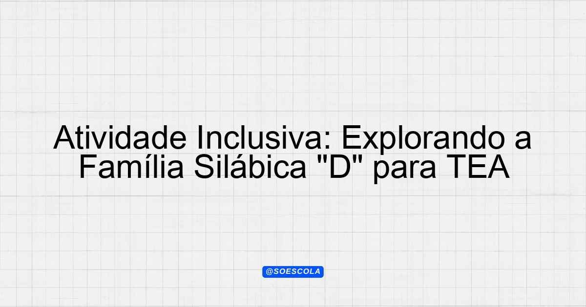Continue lendo🌟 Atividade Adaptada – Família Silábica D Tipo de Adaptação: Transtorno do Espectro Autista (TEA) (Grau severo) | 🎈 Educação