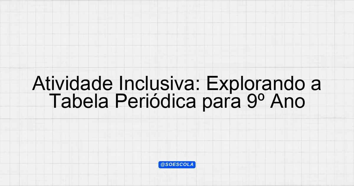 Continue lendo🌟 Atividade Adaptada – Tabela Periódica Tipo de Adaptação: deficiência intelectual (dificuldades cognitivas) (Grau moderado) | Complexidade: Baixa | Ano: