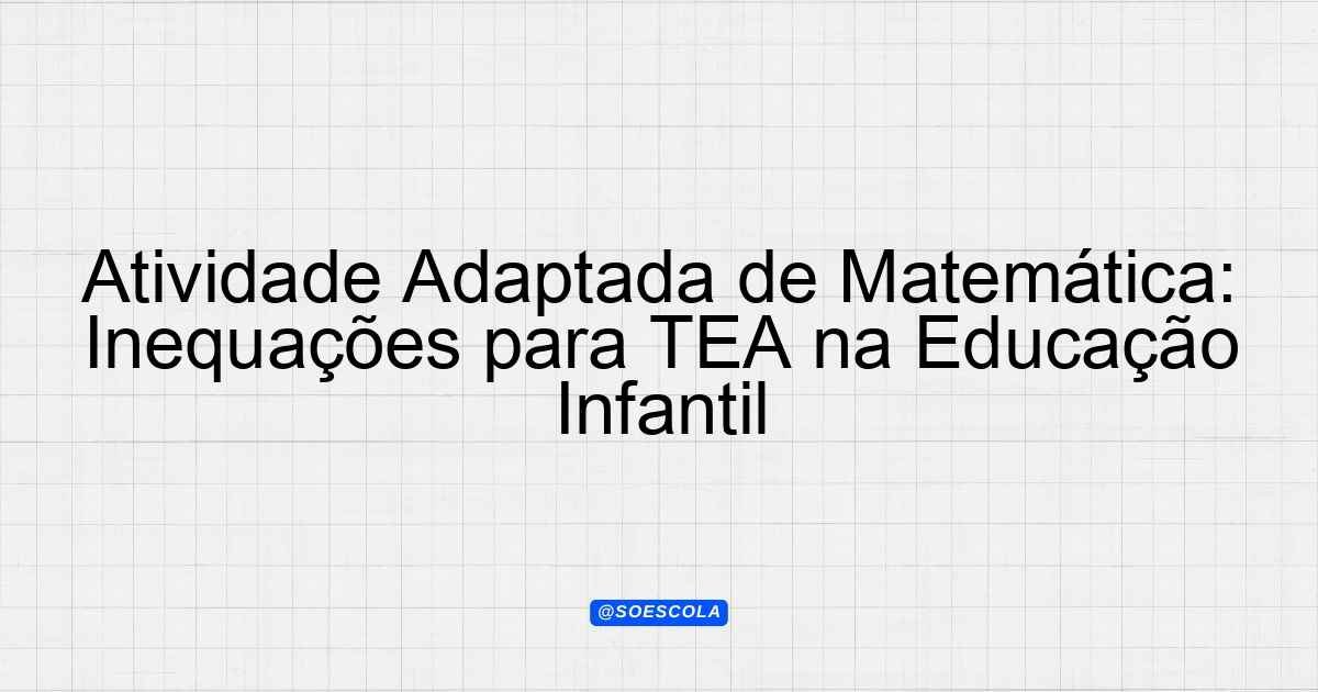 Continue lendo🌟 Atividade Adaptada – inequação Tipo de Adaptação: Transtorno do Espectro Autista (TEA) (Grau severo) | 🎈 Educação Infantil |