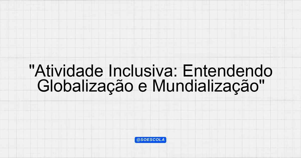 Continue lendo🌟 Atividade Adaptada – Integração mundial e suas interpretações: globalização e mundialização Tipo de Adaptação: deficiência intelectual (dificuldades cognitivas) (Grau