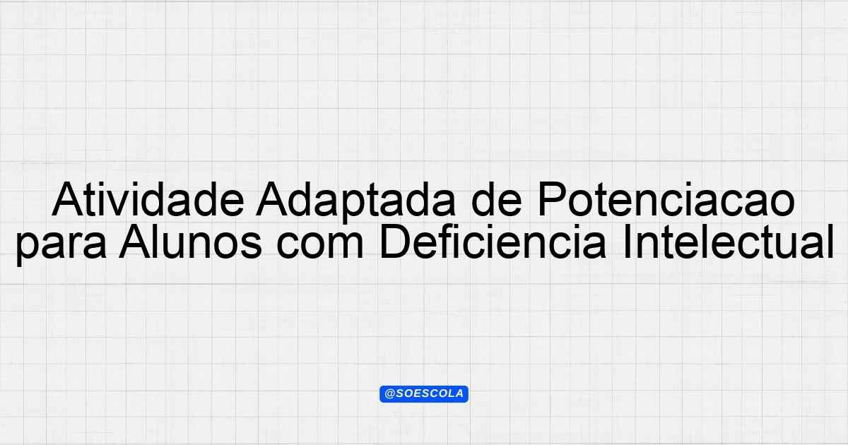 Continue lendo🌟 Atividade Adaptada – Potenciação Tipo de Adaptação: deficiência intelectual (dificuldades cognitivas) (Grau moderado) | Ano: Ensino édio | Disciplina: