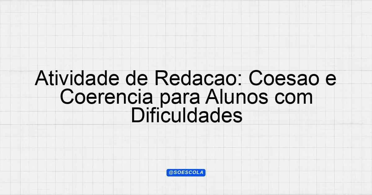 Continue lendo🌟 Atividade Adaptada – COESÃO E COERÊNCIA NA REDAÇÃO Tipo de Adaptação: deficiência intelectual (dificuldades cognitivas) (Grau moderado) | Complexidade: