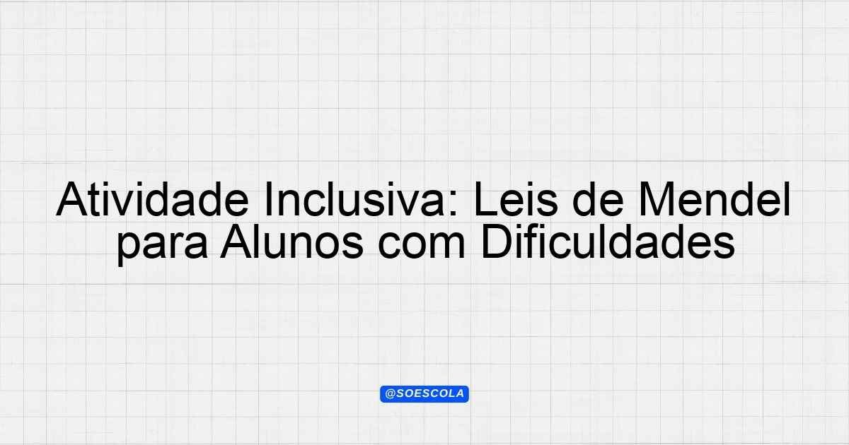 Continue lendo🌟 Atividade Adaptada – Leis de Mendel Tipo de Adaptação: deficiência intelectual (dificuldades cognitivas) (Grau moderado) | Complexidade: Baixa |