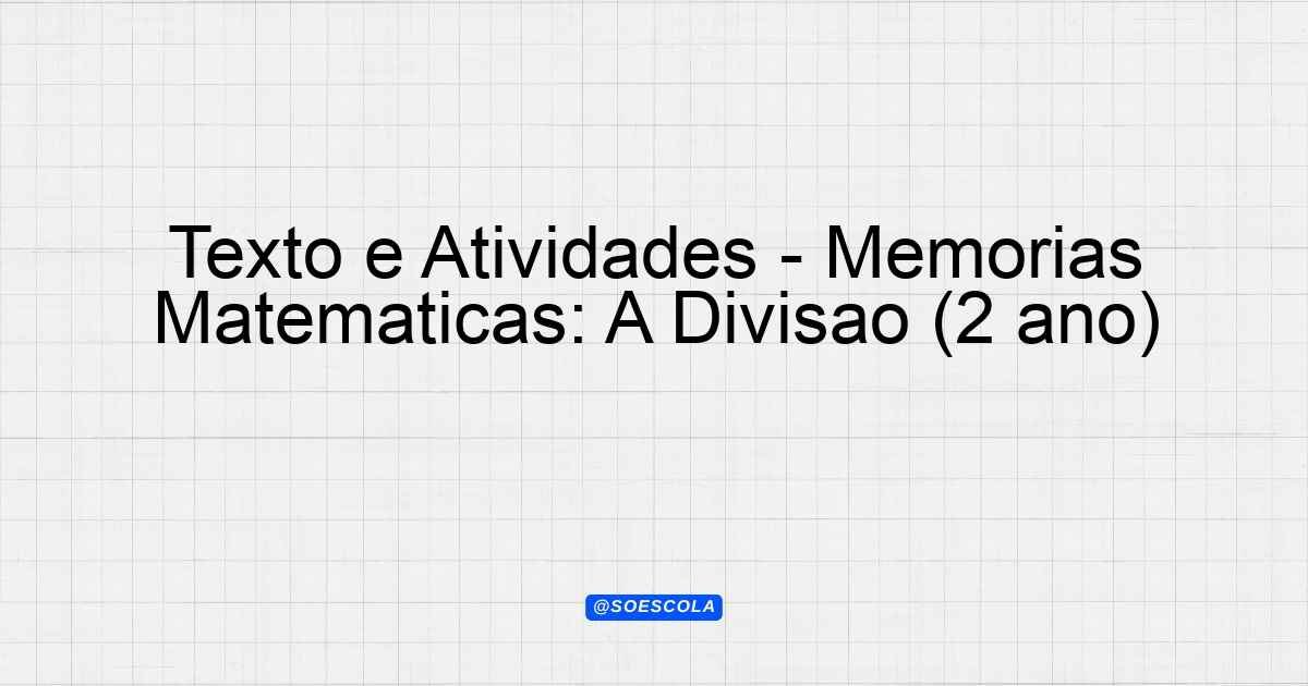 Continue lendoNesta postagem vamos disponibilizar um texto e atividades para trabalhar com alunos do 2º ano na disciplina Matemática. Tema: divisão