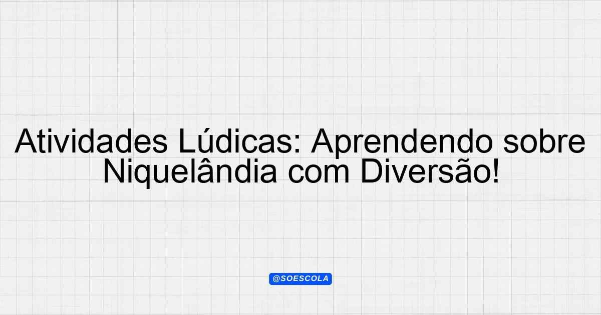 Atividades Lúdicas: Aprendendo sobre Niquelândia com Diversão!