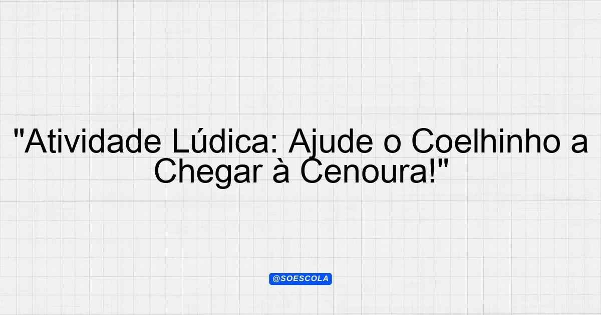 Continue lendoLeve o Coelhinho até a Cenoura Leve o Coelhinho até a Cenoura A proposta de atividades lúdicas voltadas para a